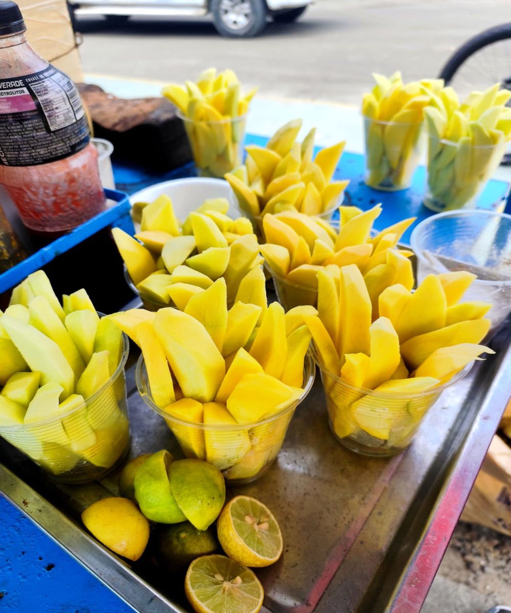 After finishing the ceviche, I like to walk to the end of the malecón where the mango and coconut stands are. There, I grab a giant coconut for $1.50—and I never forget to take the tender coconut meat home. I’ll either snack on it later or use it to cook an encocado with shrimp.